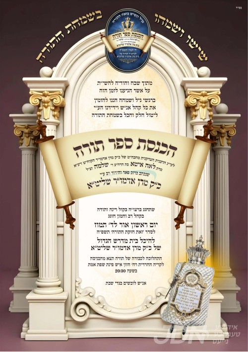 היינט קומט פאר די מעמד הכנסת ספר תורה וואס ווערט אריינגעגעבן צום ביהמ"ד הגדול לעלוב אין בית שמש, נדבת כ"ק אדמו"ר מלעלוב שליט"א לזכר נשמת אמו הרבנית הצדיקת מלעלוב ע"ה.