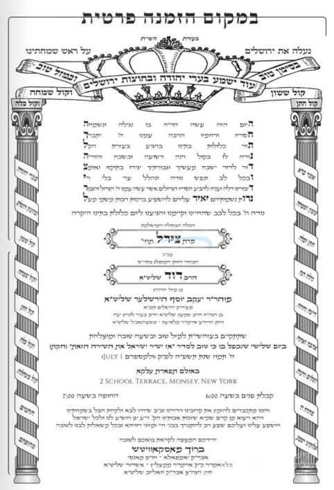 היינט קומט פאר די שמחת החתונה פון א אייניקל ביי כ"ק אדמו"ר מלויעוו טשערנאביל פארשעי שליט"א, די חתן א זון פון זיין איידעם הגה"צ ר' יעקב יוסף הירשלער שליט"א, זון פון הגה"צ מגיד מישרים ר' שמעון הירשלער שליט"א פון לאנדאן, מיט די כלה א טאכטער פון כ"ק אדמו"ר מיאמפאלא שליט"א, זון פון כ"ק אדמו"ר ממעליץ שליט"א פון אשדוד, און איידעם ביי הגה"צ אבד"ק חוליוב שליט"א. – די שמחת החתונה קומט פאר אין זאל תפארת עלקא אין מאנסי.