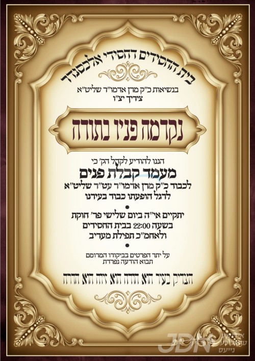 כ"ק אדמו"ר מאלכסנדר שליט"א קומט היינט אן אויף א בליץ באזוך קיין ציריך שווייץ, צו באשיינען די שמחת החתונה בבית הנגיד החסיד ר' ברוך אלימלך פערלמאן הי"ו מגדולי תומכי מוסדות אלכסנדר, היינט נאכט קומט פאר א מעמד קבלת פנים לכבודו פונעם רבי'ן אין אלכסנדר בית המדרש אין ציריך.