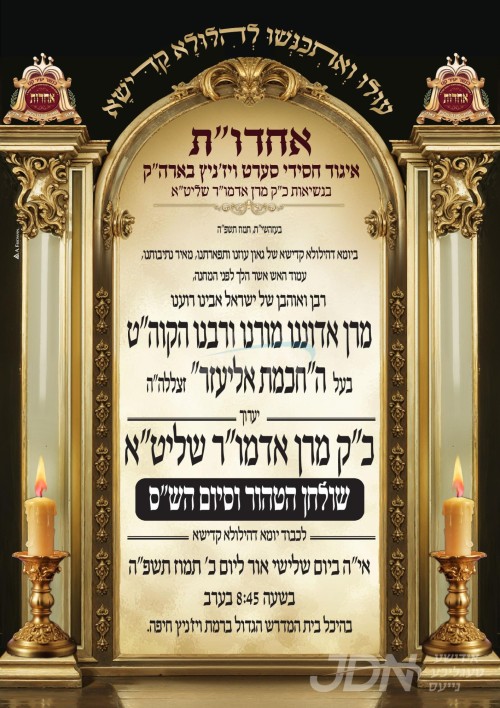 כ"ק אדמו"ר מסאדיגורא שליט"א לאזט זיך היינט ארויס אויף א נסיעה קיין חוץ לארץ, צוערשט קיין אנטווערפן בבית חותנו הגה"צ אב"ד אהל יעקב שליט"א, און דערנאך קיין איטאליע וואו דער רבי וועט זיך אויפהאלטן עטליכע וואכן אויף אפרוה.