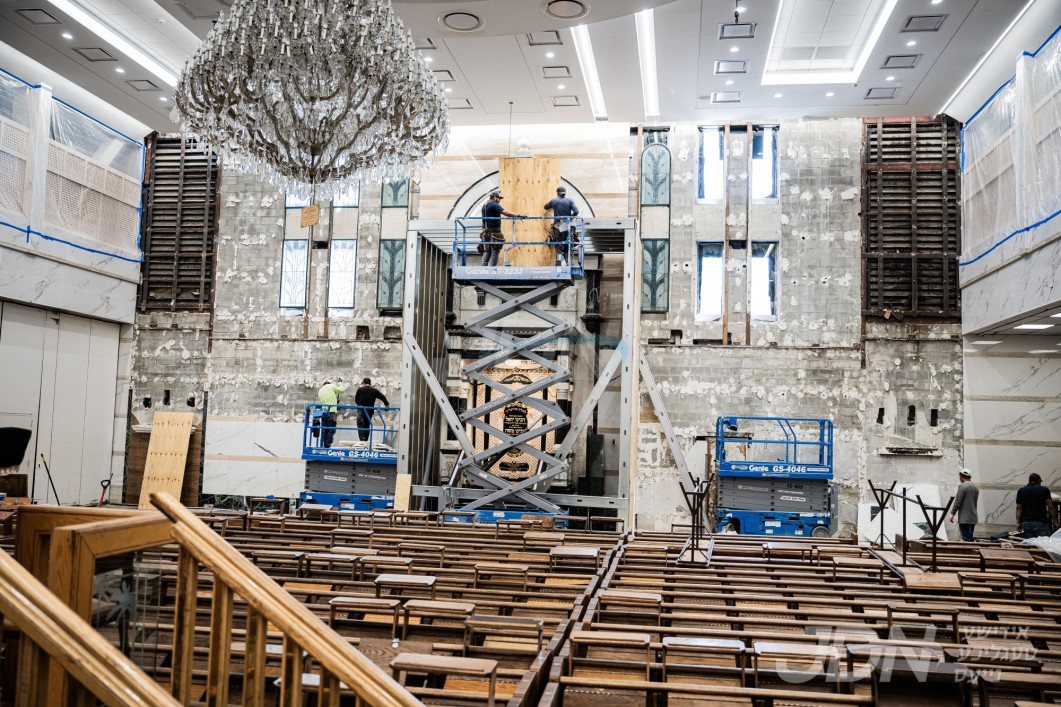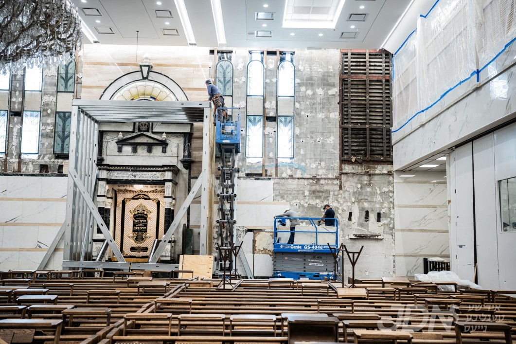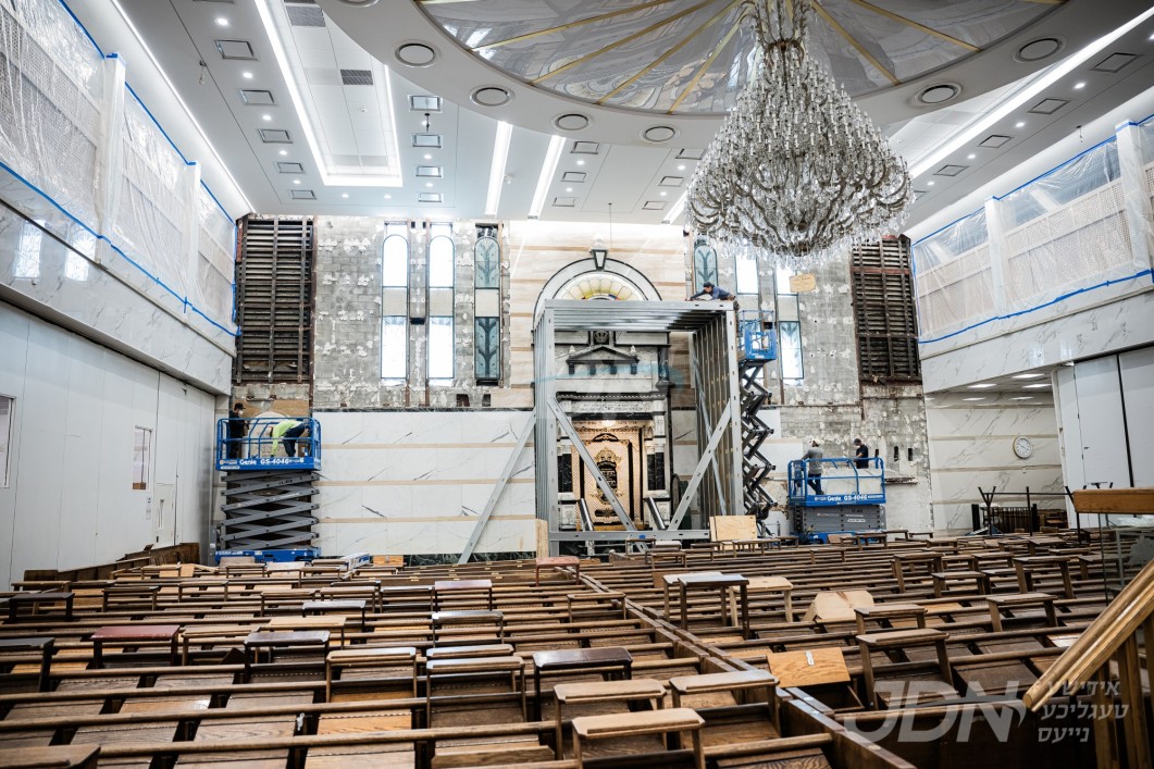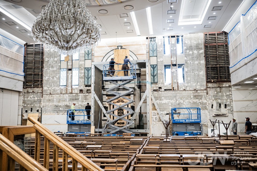 אין די יעצטיגע טעג נאך וואס כ"ק אדמו"ר מסאטמאר שליט"א האט פארלאזט קרית יואל, און ארויסגעפארן קיין ניו העמפשער אויף אפרוה פאר פיר וואכן, איז אונטערגענומען געווארן ספעציעלע רענאוואציע ארבעט דורך די הנהלת הקהילה אין קרית יואל, צו פראכטפול איבערבויען און פארשענערן דעם מזרח וואנט אין ביהמ"ד הגדול, דער מקום קדוש וואס איז שוין פארהייליגט נאנט צו א יובל יארן, און האט איינגעזאפט מיליאנען שעות תורה ותפילה דורכאויס די אלע יארן.