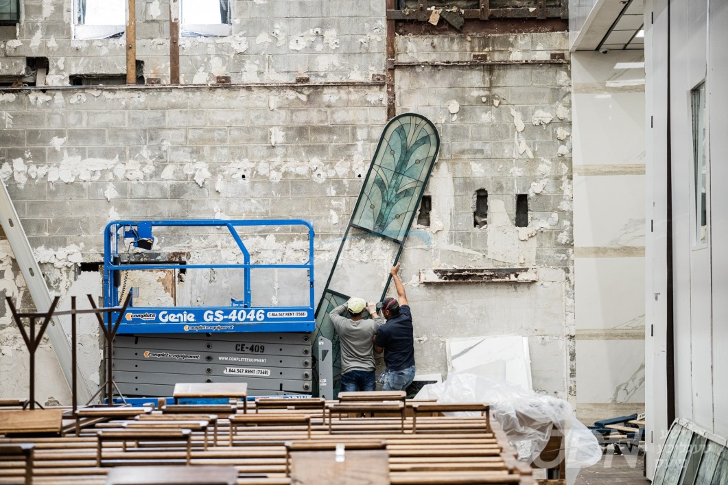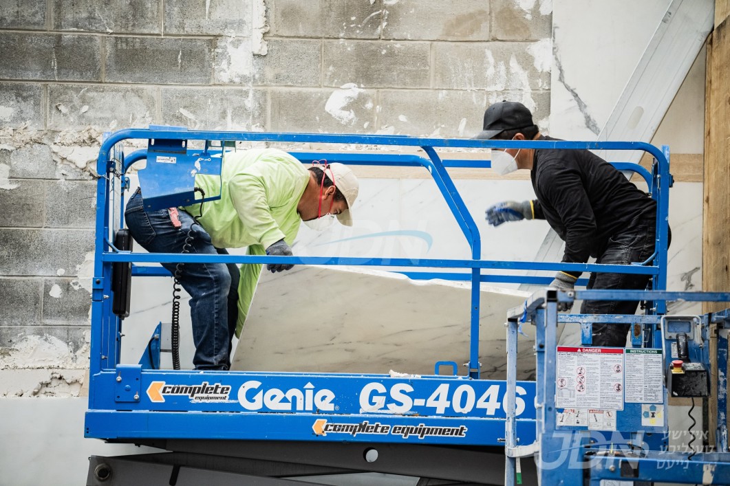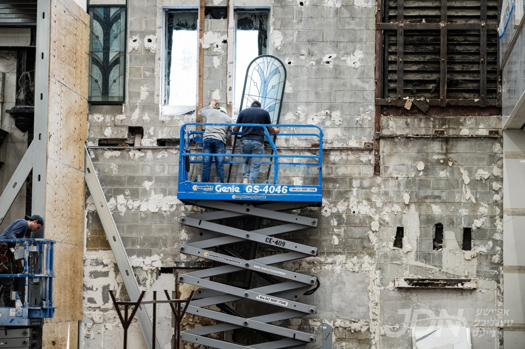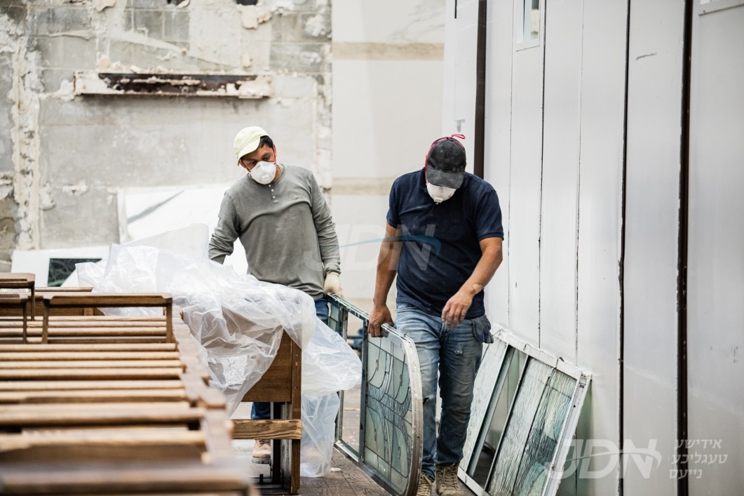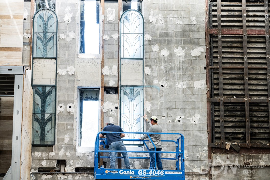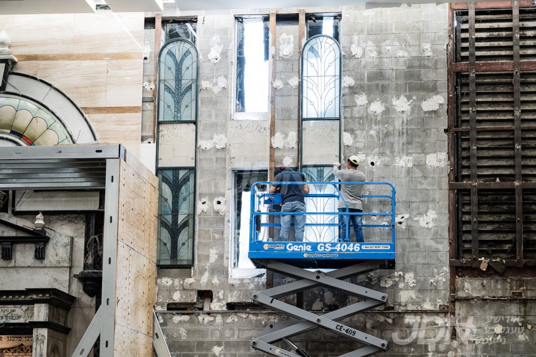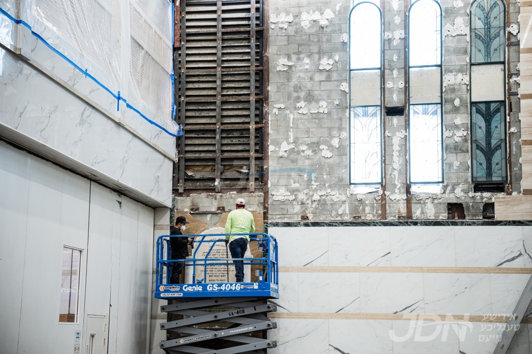 דעם מאנטאג האט מען אנגעהויבן מיט די ארבעט, אראפצונעמען די טיילס וואס האט ביז יעצט פארדעקט די מזרח וואנט, און עס איז אנטפלעקט געווארן די ארגינעלע ציגל וואס האט געדינט אלס פארמאלע מזרח וואנט פאר די ערשטע פאר יאר נאכן חנוכת בית המדרש. אצינד וועט מען ארויפשטעלן א נייע פראכטפולע און מאיעסטעטישע אויסזעהן וואס וועט צוברענגען גרויס פראכט פארן ביהמ"ד הגדול.