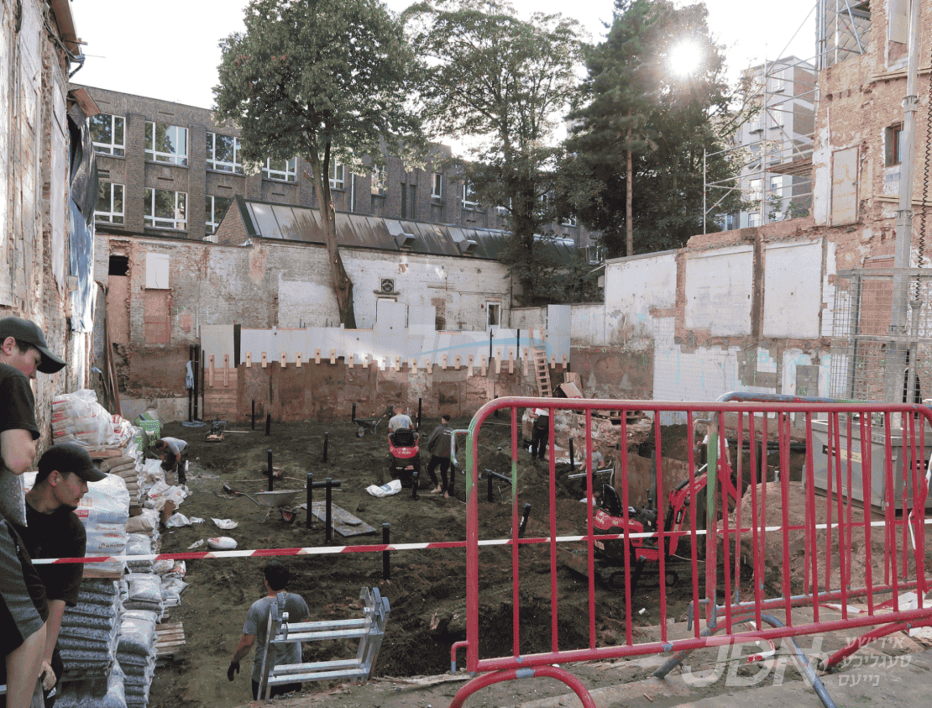 בהוראת הקודש פונעם רבי'ן האט מען געלאזט די מזרח וואנט עס זאל נאך האבן עפעס א שפור פון דעם הייליגן און נאסטאלגישן בנין בית המדרש, און די בוי ארבעט גייט אן אין פולן שוואונג, מיטן האפענונג אז די נייע בית המדרש זאל שוין זיין גרייט לקראת די ימים הנוראים הבאים עלינו לטובה.