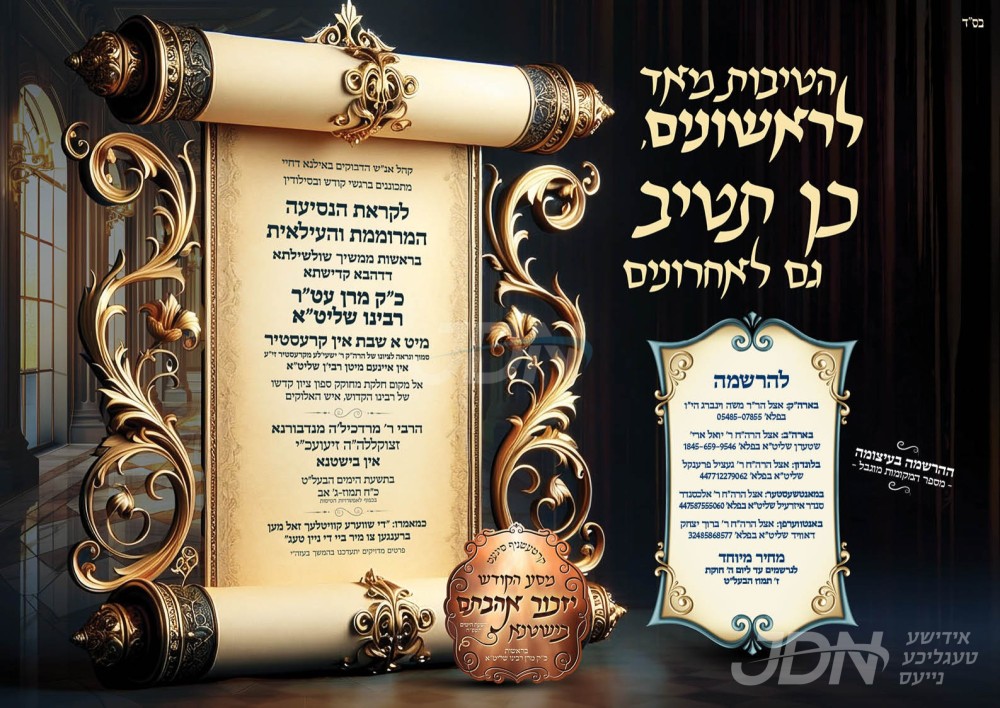 עס איז געשלאסן געווארן די שידוך פונעם חתן א זון פון הגה"צ ר' שלמה זלמן היילפערין שליט"א, זון פון הגה"צ גאב"ד ראדאמישלא רמות שליט"א, און איידעם ביי הגה"צ ר' יעקב ישראל שמערלער שליט"א, איידעם ביי כ"ק אדמו"ר מסטראפקוב זצ"ל, מיט די כלה א טאכטער פון הגה"צ ר' יעקב שלמה כהנא שליט"א אדמו"ר מזידטשויב ספינקא און מו"ץ בעדה החרדית, איידעם ביי הגה"צ ר' יעקב שמשון יאקאבאוויטש שליט"א, איידעם ביי כ"ק אדמו"ר מגארליץ זצ"ל.