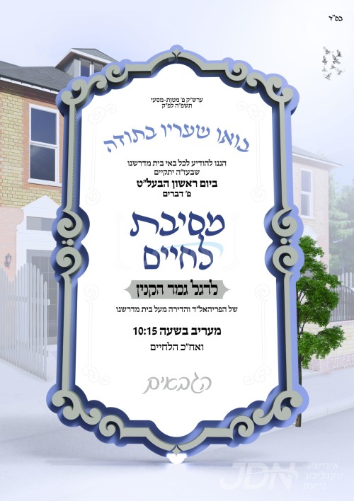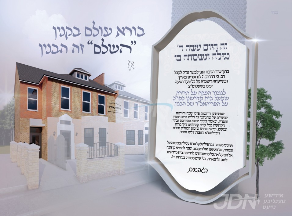 היינט קומט פאר א מסיבת לחיים אין ביהמ"ד טשערנאביל אין לאנדאן, לרגל די הרחבת גבולי הקדושה מיטן אפקויף פון א נייע בנין נעבן די עקזיסטירנדע ביהמ"ד צו פארברייטערן דעם בנין בית המדרש לרווחת הציבור.
