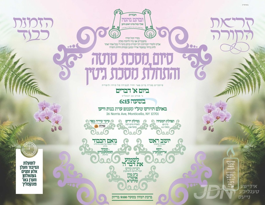 היינט קומט פאר די מעמד סיום מסכת סוטה והתחלת מסכת גיטין במסגרת הלימוד ובהם נהגה דחסידי וויען, עס קומט פאר אין די נייע זאל פון קעמפ עדת בנות וויען אין מאנטיסעלא, אין שפיץ פון כ"ק אדמו"ר מוויען שליט"א.