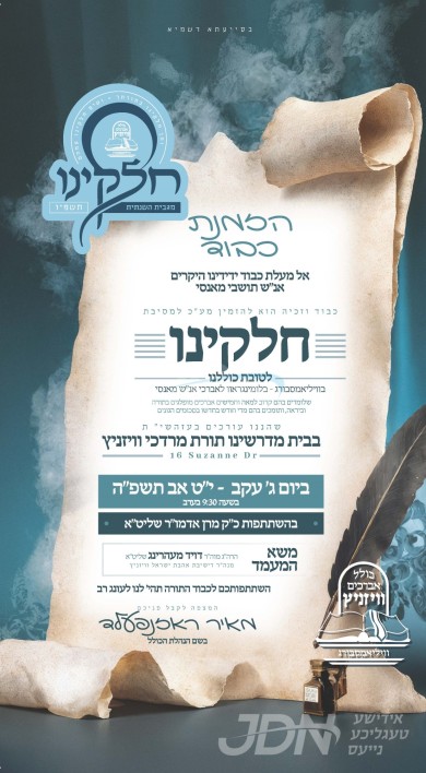 היינט קומט פאר אין מאנסי א מסיבה לטובת כולל אברכים וויזניץ אין וויליאמסבורג, אין ביהמ"ד תורת מרדכי וויזניץ אויף סוזען, אין שפיץ פון כ"ק אדמו"ר מוויזניץ שליט"א פון וויליאמסבורג.