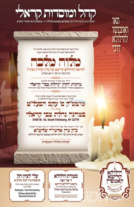 שמחת בית לעלוב – קוזמיר: דעם שבת קומט פאר די שמחת האויפרוף פון א אייניקל ביי כ"ק אדמו"ר מלעלוב שליט"א, די חתן א זון פון בנו הגדול הגה"צ ר' יואל זושא בידערמאן שליט"א, איידעם ביי הגה"צ אבד"ק מאקאווא אלעד זצ"ל, מיט די כלה א טאכטער פון הגה"צ ר' אהרן נחום טאוב שליט"א, זון פון כ"ק אדמו"ר מקוזמיר שליט"א, און איידעם ביי כ"ק אדמו"ר מלעלוב בית שמש שליט"א. – די שמחת האויפרוף קומט פאר אין ביהמ"ד הגדול לעלוב אין בית שמש.