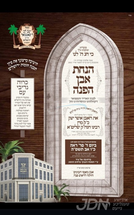 היינט קומט פאר די מעמד הנחת אבן הפינה פאר די נייע בנין הקהילה והמוסדות סאטמאר אין ירושלים, אויפן שטח הבניה אויף רחוב הושע.