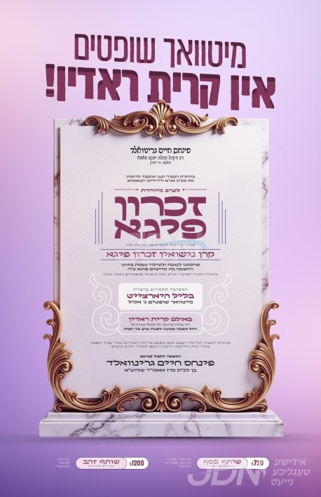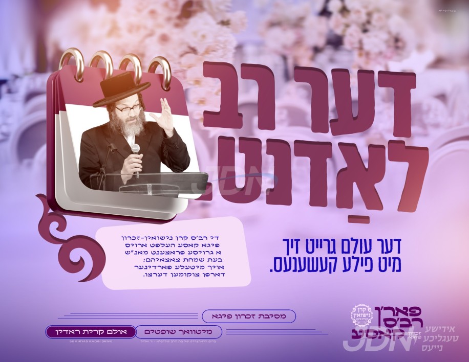 היינט קומט פאר א מסיבה לטובת קרן נישואין זכרון פיגא שע"י קהילת פאפא אין מאנסי, בנשיאות הגה"צ אבד"ק פאפא מאנסי שליט"א בן כ"ק אדמו"ר מפאפא שליט"א, עס קומט פאר אין זאל פון קרית ראדין אין מאנסי.
