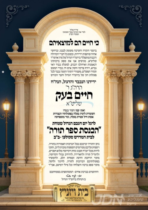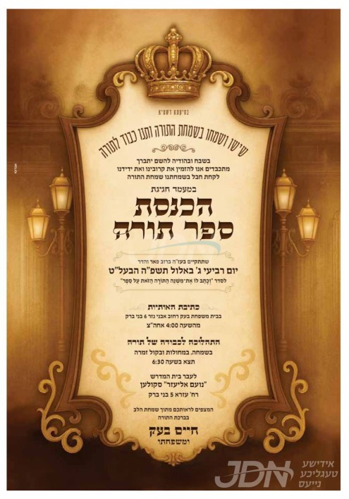 היינט קומט פאר די מעמד הכנסת ספר תורה וואס ווערט אריינגעגעבן צום ביהמ"ד נועם אליעזר דחסידי סקולען אין בני ברק, נדבת הרב החסיד ר' חיים בעק הי"ו.