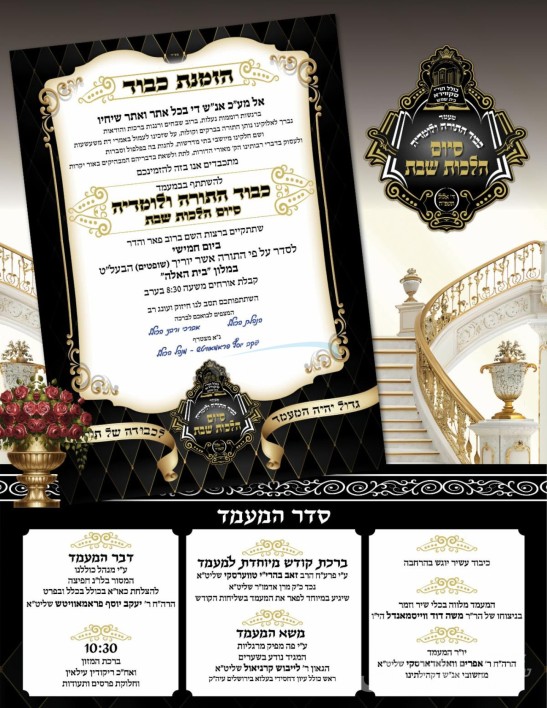 היינט קומט פאר א מעמד כבוד התורה אינערהאלב כולל תולדות יעקב יוסף דחסידי סקווירא אין בית שמש, סיום הלכות שבת וואס איז געלערנט געווארן ברוב עמל ויגיעה דורך די חברי ורבני הכולל, עס קומט פאר אין זאל בית האלה נעבן בית שמש.