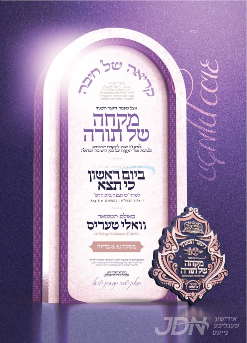 היינט קומט פאר די שמחת הבר מצוה פון א זון ביי הרב חנני' יוסף דאנציגער שליט"א, זון פון הגה"צ ר' יחיאל דאנציגער שליט"א, זון פון כ"ק אדמו"ר מאלכסנדר זצ"ל בעל אמרי מנחם, און איידעם ביי כ"ק אדמו"ר מזוועהיל ירושלים שליט"א. – די שמחה קומט פאר אין זאל מסילת ישרים אין ירושלים.