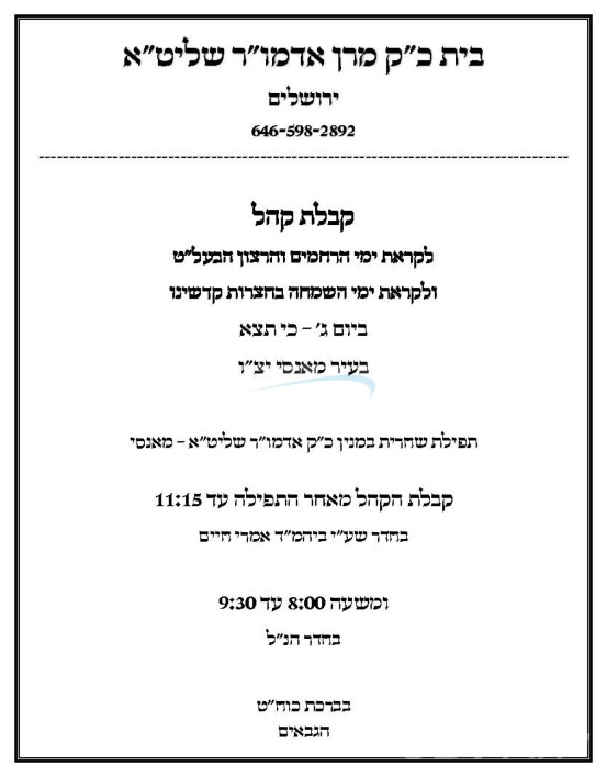 כ"ק אדמו"ר ממודזיץ שליט"א קומט היינט אן קיין פתח תקוה, אויפצונעמען דעם ציבור חסידים לקראת די הייליגע טעג הממשמשים ובאים.