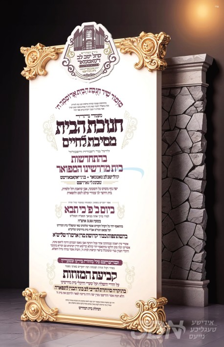 היינט קומט פאר די מעמד קביעת מזוזה און חנוכת הבית פאר די ניי איבערגעבויעטע דאווענען שטיבלעך בבנין ביהמ"ד קהל יטב לב ד'סאטמאר בניני יאקאבאוויטש שכונת ליע גארדענס, אין שפיץ פון כ"ק אדמו"ר מסאטמאר שליט"א.