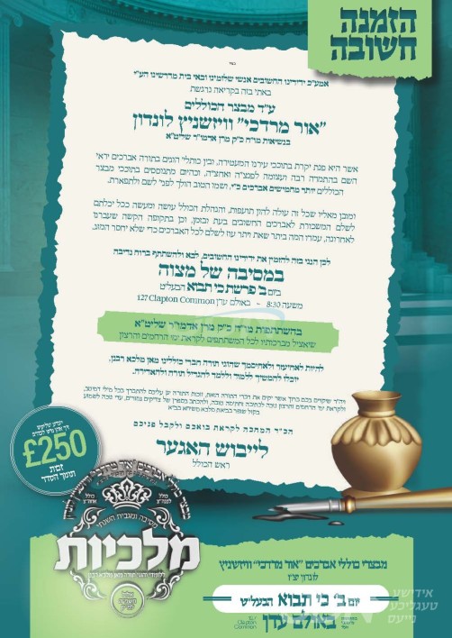 היינט קומט פאר די יערליכע מסיבה לטובת כולל אור מרדכי דחסידי וויזניץ אין לאנדאן, אין די עדן זאל אויף קלעפטאן קאממאן, אין שפיץ פון כ"ק אדמו"ר מוויזניץ שליט"א פון לאנדאן.