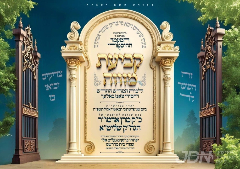 היינט קומט פאר די מעמד קביעת מזוזה פאר די נייע צאנזער בית המדרש אין שטאט אלעד, אין שפיץ פון כ"ק אדמו"ר מצאנז שליט"א וועלכער קומט היינט אן קיין אלעד, אויפצונעמען די חסידים לקראת די הייליגע טעג הממשמשים ובאים.