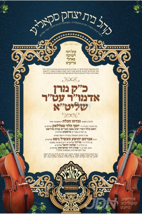 שמחת בית סקאליע: היינט קומט פאר די שמחת החתונה פון א אייניקל ביי כ"ק אדמו"ר מסקאליע שליט"א, די כלה א טאכטער פון זיין איידעם הגה"צ ר' יוסף פאללאק שליט"א ראה"כ צאנז בארא פארק, זון פון הגה"צ אבד"ק בראשוב שליט"א, מיט די חתן א זון פון הרב מרדכי גיפס שליט"א, איידעם ביי הגה"צ ר' אהרן דוד טווערסקי שליט"א מהארנסטייפל. – די שמחת החתונה קומט פאר אין עטרת חינקא זאל אין בארא פארק.