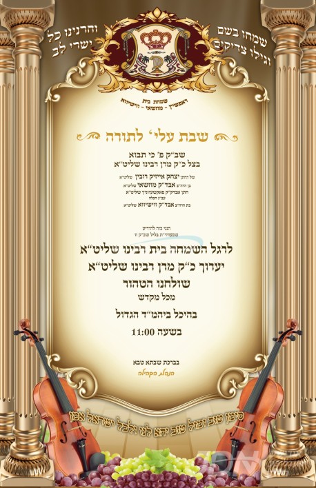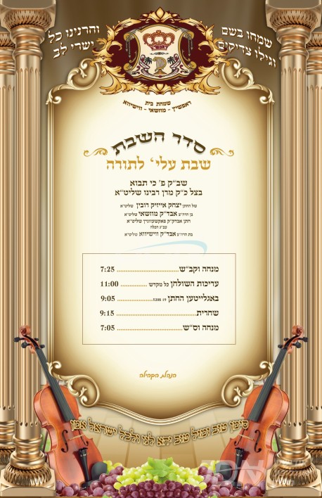שמחת בית ראפשיץ – ווישיווא וויזניץ: דעם שבת קומט פאר די שמחת האויפרוף פונעם חתן א זון פון הגה"צ ר' יעקב רובין שליט"א אבד"ק מוזשאי, זון פון כ"ק אדמו"ר מראפשיץ שליט"א, און איידעם ביי הגה"צ ר' חיים האלבערשטאם שליט"א אבד"ק פאקשעוויץ, מיט די כלה א טאכטער פון הגה"צ ר' מנחם מענדיל האגער שליט"א אבד"ק ווישיווא מאנסי, איידעם ביי הגה"צ ר' אשר זעליג גרינבערג זצ"ל ראש ישיבת שער אפרים. – די שמחת האויפרוף קומט פאר אין ביהמ"ד ראפשיץ אין בארא פארק.