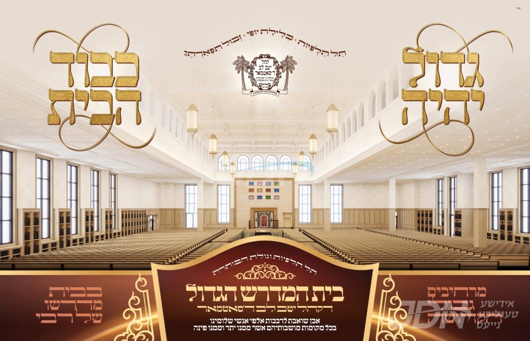 דעם זונטאג פארטאגס במוצאי מנוחה וועלן טויזענטער חסידי סאטמאר באנייען די איבערגעבויעטע ביהמ"ד הגדול דקהל יטב לב ד'סאטמאר אויף ראדני סטריט אין וויליאמסבורג, בית מדרשו של רבי וואו הרה"ק מסאטמאר זי"ע האט אפגעראכטן די עבודת הקודש בחיים חיותו, נאך א העפטיגע בוי ארבעט צו מרחיב זיין די גבולי הקדושה אין לויף פון די פארגאנגענע וואכן.