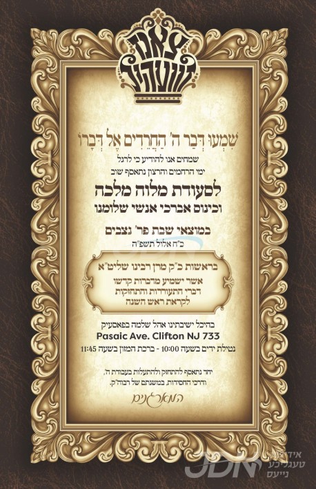 דעם מוצאי שבת קומט פאר א כינוס פאר תלמידי וחסידי צאנז זוועהיל לרגל די ימי הרחמים והרצון, אין שפיץ פון כ"ק אדמו"ר מצאנז זוועהיל שליט"א וועלכער וועט אויפטרעטן מיט א שמועס לקראת די הייליגע טעג, עס קומט פאר אין היכל ישיבת אהל שלמה צאנז זוועהיל אין פאסעיק ניו דזשערזי.