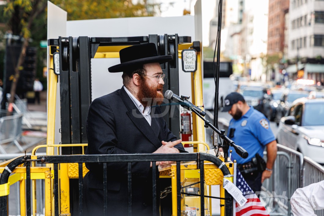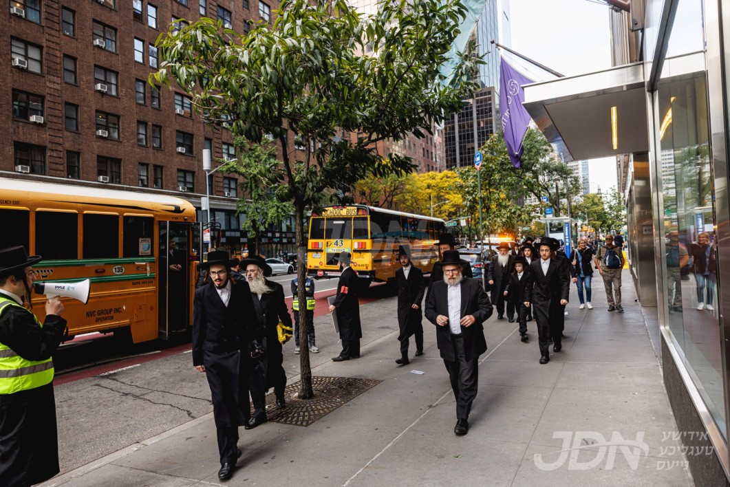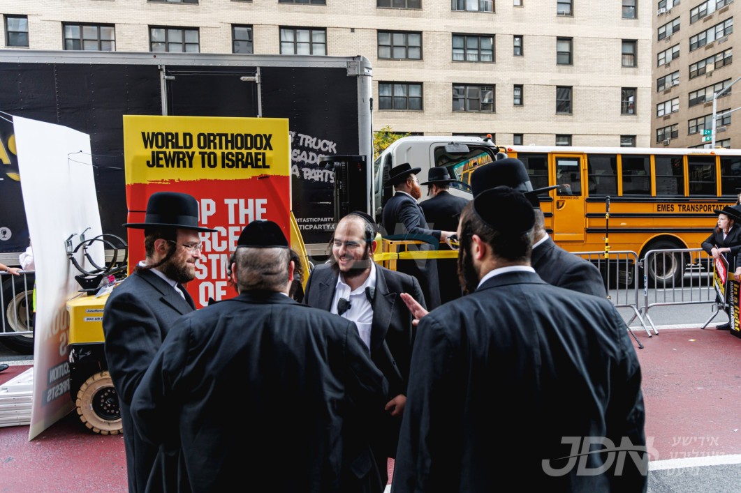 זונטאג נאכמיטאג פרשת נח, צום באשטימטן צייט פיר אזייגער נאכמיטאג, האבן שוין טויזענטער אידן אנגעהויבן שטראמען צו די דעזיגנירטע גאסן פארנט פון די ציוניסטישע קאנסולאט אויף די צווייטע עוועניו אין מאנהעטן, עטליכע גאסן זענען געווארן בלאקירט צו קענען אקאמאדירן די צענדליגע טויזענטער אידן, ווען הונדערטער באסעס קורסירן פון אלע שטעט לענגאויס ניו יארק און ניו דזשערזי צו ברענגען דעם ציבור מיט די גרעסטע מעגליכקייט.