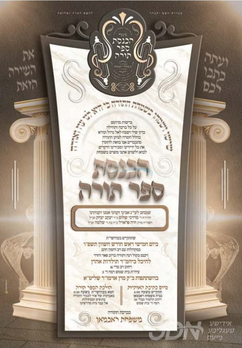 היינט קומט פאר די מעמד הכנסת ספר תורה וואס ווערט אריינגעגעבן צום ביהמ"ד תולדות אהרן אין די רמה ד' געגנט אין בית שמש, נדבת משפחת ראכמאן שיחי', אין שפיץ פון כ"ק אדמו"ר מתולדות אהרן שליט"א.