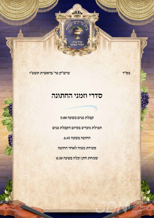 שמחת בית באבוב 45: היינט קומט פאר די שמחת החתונה פון א אייניקל ביי כ"ק אדמו"ר מבאבוב 45 שליט"א, די כלה א טאכטער פון זיין עלטסטן איידעם הגה"צ ר' חיים ברוך האלבערשטאם שליט"א, זון פון הגה"צ ר' בנציון אברהם האלבערשטאם שליט"א אבד"ק בית אברהם פאקשעוויץ, מיט די חתן א זון פון הגה"צ ר' יהושע פרץ הורוויץ שליט"א, זון פון הגה"צ אבד"ק זרע קודש וראש ישיבת בית מאיר שליט"א, און איידעם ביי הגה"צ ר' ישעי' תאומים פרענקל שליט"א רב דקהל קדושי קראקא בני ברק. – די שמחת החתונה קומט פאר אין ביהמ"ד הגדול והחדש באבוב 45 אין בארא פארק.
