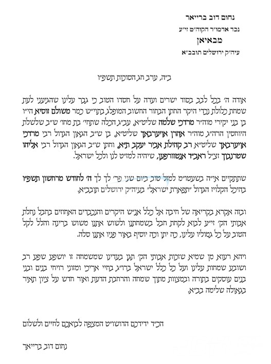 שמחת בית באיאן: עס איז געשלאסן געווארן די שידוך פון א אייניקל ביי כ"ק אדמו"ר מבאיאן שליט"א, די כלה א טאכטער פון בנו הגדול הגה"צ ר' יוסף ברייאר שליט"א, איידעם ביי הגאון החסיד ר' יעקב שרייבער שליט"א מחשובי חסידי באיאן, מיט די חתן א זון פון הגה"צ ר' שלום וואגשאהל שליט"א, זון פון הגה"צ ר' הערשיל וואגשאהל שליט"א ר"ם בישיבת ערלוי, און איידעם ביי הגה"צ ר' אשר ראזענפעלד שליט"א, זון פון כ"ק אדמו"ר מפינסק קארלין זצ"ל בעל אורחות אהרן.