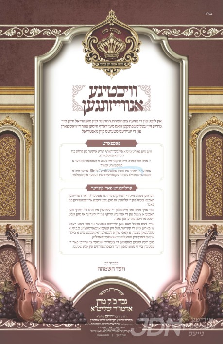 די גרויסע חתונה וועט פארקומען דעם דאנערשטאג פרשת לך לך בחצר הקודש וויזניץ אין מאנטריאל, די גרויסע שארית ישראל זאל איז געווארן ארויסגעדינגען מיט אלע אפטיילונגען, און וועט דינען אלס אכסניא פאר די שמחה הרוממה.