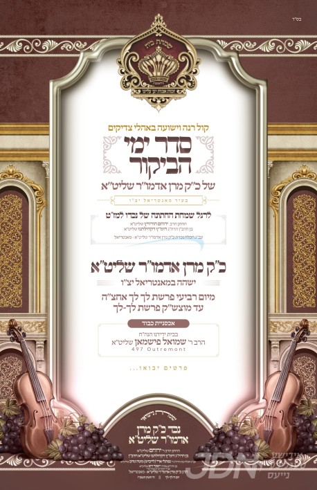 איבערהויפט גרייט מען זיך צו די געהויבענע מסע הקודש וואס כ"ק אדמו"ר מוויזניץ שליט"א פון וויליאמסבורג נעמט אונטער קיין מאנטריאל קאנאדע צו באשיינען די שמחה, אינאיינעם מיט א גרויסע סוויטע חסידים ואנשי מעשה, הונדערטער אינגעלייט און בעלי בתים און די בחורי הישיבות פון וויליאמסבורג און בלומינגראוו, אין ראם פון די געהויבענע נסיעה וועט געפראוועט ווערן א גרויסן שבת אין מאנטריאל, בצל הקודש פון די צוויי ברידער האדמורי"ם שליט"א, אינאיינעם מיט די שבת של שמחה די שבת שבע ברכות אין ביהמ"ד הגדול וויזניץ אין מאנטריאל.