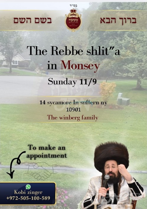 כ"ק אדמו"ר ממעזבוזש שליט"א וועלכער איז צוגאסט די טעג אין ניו יארק בקרב חסידיו, וועט היינט אנקומען צו די סאפפערן געגנט אין מאנסי און אויפנעמען די חסידים לעצה ולברכה.