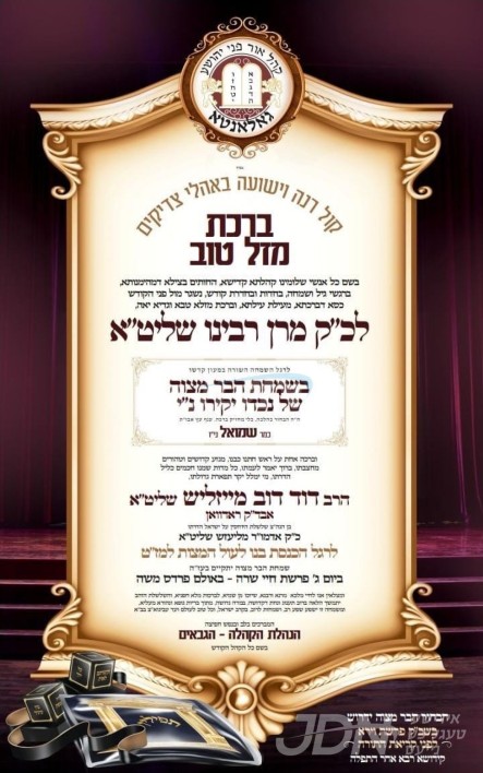 היינט קומט פאר די שמחת הבר מצוה פון א אייניקל ביי כ"ק אדמו"ר מגאלאנטא שליט"א, א זון פון זיין איידעם הגה"צ ר' דוד דוב מייזליש שליט"א אב"ד ראדוואן, זון פון כ"ק אדמו"ר מליעזש לאנדאן שליט"א. – די שמחה קומט פאר אין זאל פרדס משה אין וויליאמסבורג.