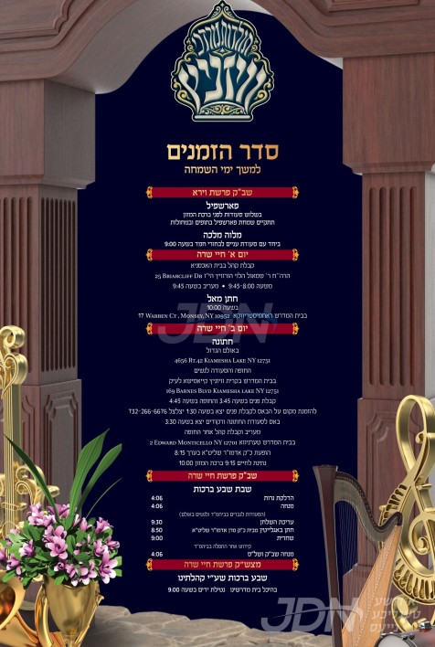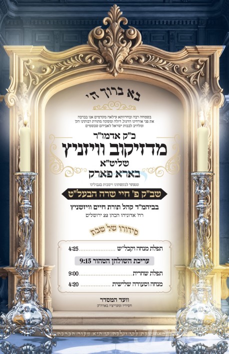 דעם שבת קומט פאר די שמחת השבע ברכות פונעם חתן א זון פון הרב חיים אברהם זילבער שליט"א, זון פון הגה"צ גאב"ד פריימאן שליט"א ראב"ד התאחדות הרבנים, מיט די כלה א טאכטער פון הרב מנשה מאיער שליט"א, איידעם ביי כ"ק אדמו"ר מנדבורנא שליט"א פון בארא פארק. – די שמחת השבע ברכות קומט פאר אין לעיקוואד. דער זיידע כ"ק אדמו"ר מנדבורנא שליט"א איז צוגאסט אויף שבת אין לעיקוואד לכבוד די שמחה, און וועט אפרעכטן די תפילות און טישן בבית מדרשו קהל תפארת שלום נדבורנא אין לעיקוואד.