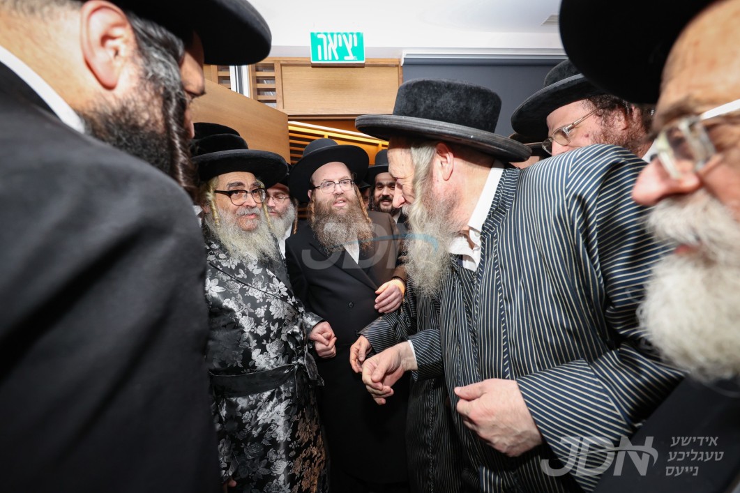 פון דארט איז דער רבי שליט"א אנגעקומען צום הויפט לשכת העדה החרדית אין די בניני זופניק, וואו עס איז פארגעקומען א באשיידענע קבלת פנים לכבודו, מיט די באטייליגונג פון אלע חברי הביד"ץ די שרי התורה, עס האט אויפגעטרעטן דער ספרא דדיינא הרב יצחק שלמה בלויא שליט"א, הגה"צ ר' יהושע ראזענבערגער שליט"א חבר הביד"ץ וגאב"ד קרית הרמ"א אין בית שמש, הגה"צ ר' אברהם יצחק אולמאן שליט"א חבר הביד"ץ, און מען האט געהערט דברות קודש פונעם רבי'ן שליט"א.