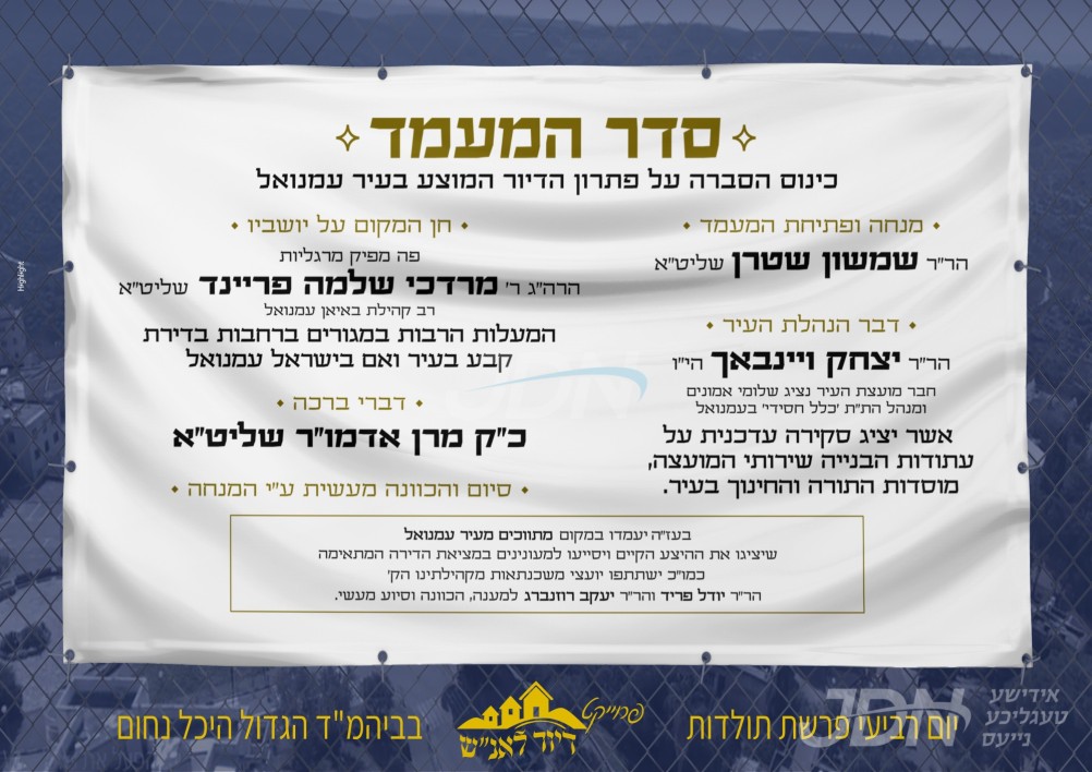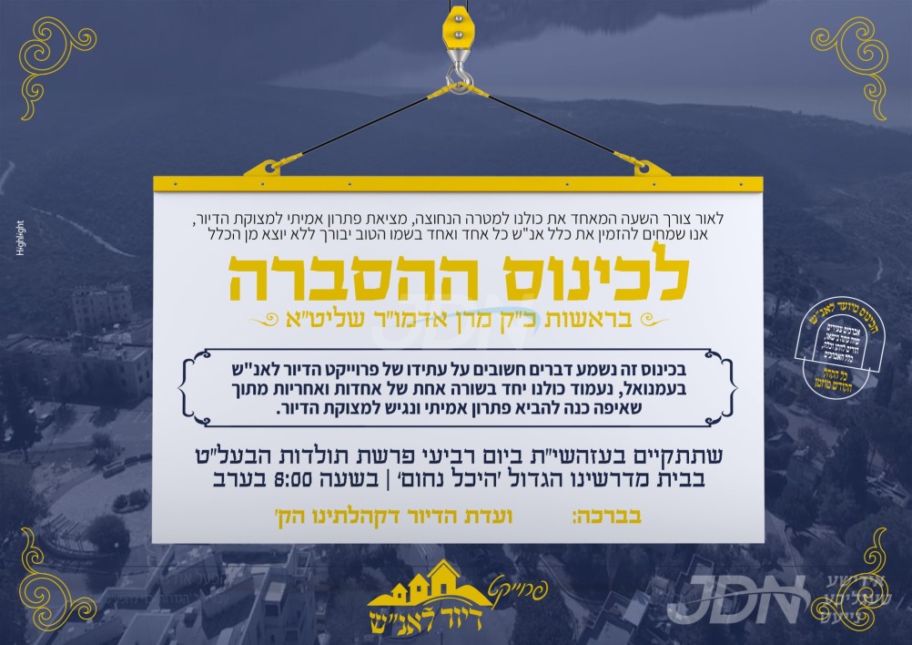 היינט קומט פאר א גרויסער כינוס פאר כלל חסידי וויזניץ בית שמש, צום התייסדות פון א נייע ישוב פאר חסידי וויזניץ אין שטאט עמנואל, עס קומט פאר אין ביהמ"ד הגדול וויזניץ אין בית שמש, אין שפיץ פון כ"ק אדמו"ר מוויזניץ שליט"א פון בית שמש.