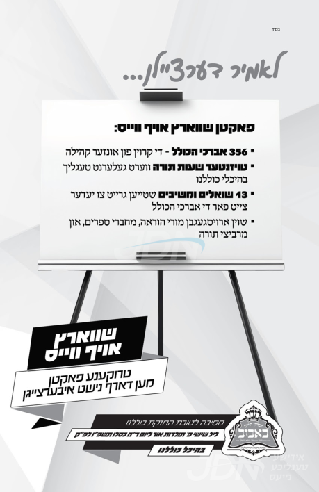 היינט קומט פאר די מעמד כבוד התורה לטובת כולל זכרון חיים ד'באבוב, אינעם היכל הכולל בבנין ביהמ"ד הגדול דחסידי באבוב אין בארא פארק, אין שפיץ פון כ"ק אדמו"ר מבאבוב שליט"א.