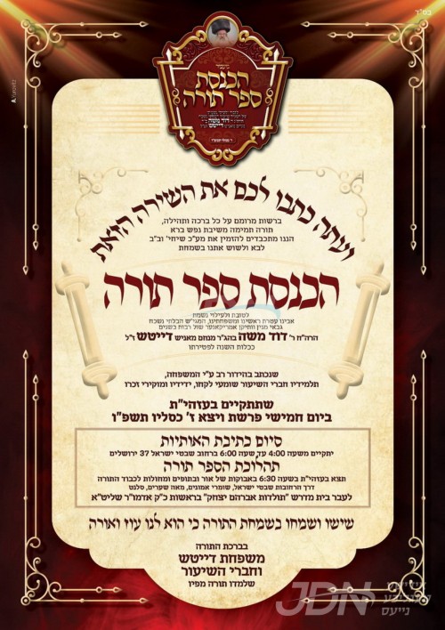 היינט קומט פאר די מעמד הכנסת ספר תורה וואס ווערט אריינגעגעבן צום ביהמ"ד הגדול תולדות אברהם יצחק אין ירושלים, לע"נ הרב החסיד ר' דוד משה דייטש ע"ה, אין שפיץ פון כ"ק אדמו"ר מתולדות אברהם יצחק שליט"א.