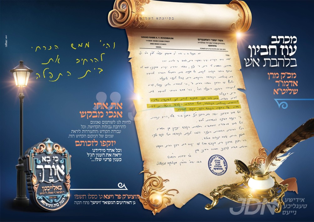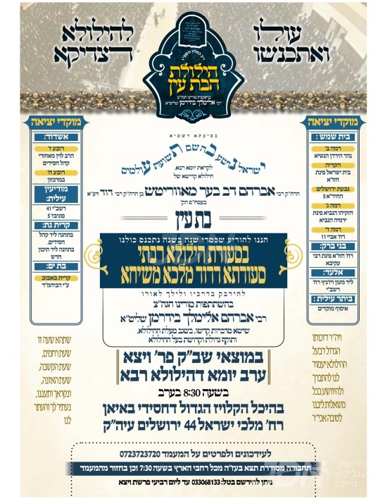 היינט קומט פאר די מעמד כי בא אורך בחצר הקודש זוטשקא, צום הרחבת גבולי הקדושה מיטן אויפבוי פון א נייע ביהמ"ד הגדול לתורה ולתפילה, די מעמד קומט פאר אין די פראכטפולע ווענישאן זאל אין פתח תקוה, אין שפיץ פון כ"ק אדמו"ר מזוטשקא שליט"א.