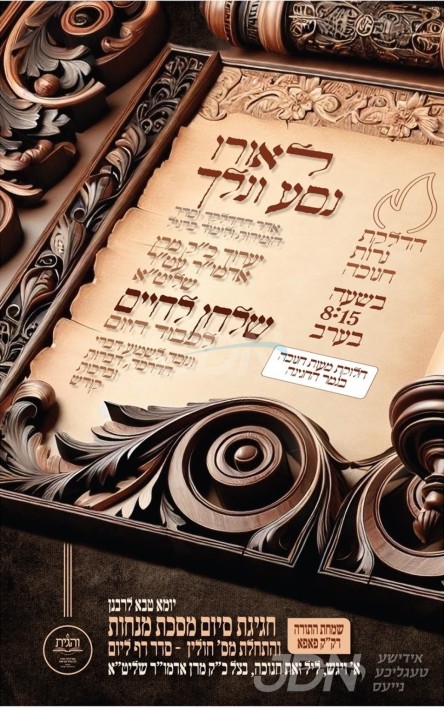 היינט קומט פאר די מעמד סיום מסכת מנחות והתחלת מסכת חולין במסגרת הלימוד והגית דחסידי פאפא דף ליום, עס קומט פאר ביים מעמד הדלקת הנרות פון כ"ק אדמו"ר מפאפא שליט"א, אין ביהמ"ד הגדול פאפא אין וויליאמסבורג.