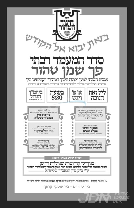 היינט קומט פאר אין לאנדאן א ספעציעלע מעמד נעילה לרגל זאת חנוכה, אין שפיץ פון הגה"צ המשפיע ר' שמעלקא בידערמאן שליט"א, אין די פרדס וויזניץ זאל אין שטאט.