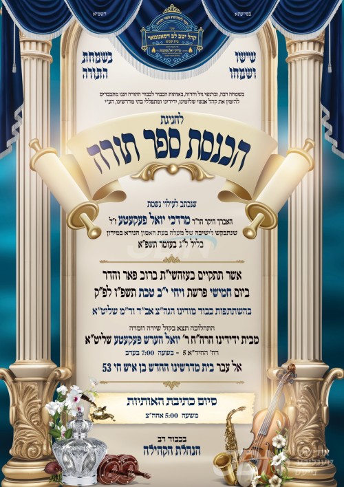 היינט קומט פאר די מעמד הכנסת ספר תורה וואס ווערט אריינגעגעבן צום סאטמארער בית המדרש אין בית שמש, לעילוי נשמת האברך החשוב ר' מרדכי יואל פעקעטע ע"ה וועלכער איז ל"ע טראגיש אומגעקומען אין די שרעקליכע מירון טראגעדיע ל"ג בעומר תשפ"א, די מעמד קומט פאר אין שפיץ פון הגה"צ ר' חיים צבי טייטלבוים שליט"א אבד"ק סאטמאר ירושלים, וועלכער איז צוגאסט די טעג בקרב חסידי סאטמאר אין בית שמש.