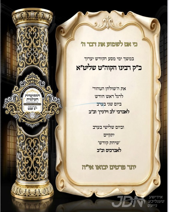 כ"ק אדמו"ר מסטריקוב ירושלים שליט"א וועט היינט אפרעכטן די יארצייט טיש לרגל די הילולא קדישא פונעם הייליגן ישמח ישראל פון אלכסנדר זי"ע, בבית מדרשו אין ירושלים.