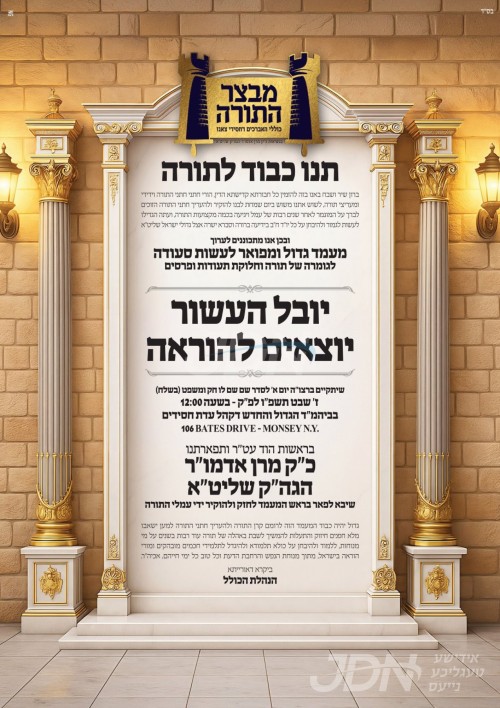 היינט קומט פאר די מעמד יובל העשור יוצאים להוראה פאר די הונדערטער חברי הכולל דחסידי צאנז אין ניו יארק, אין שפיץ פון כ"ק אדמו"ר מצאנז שליט"א וועלכער איז צוגאסט די טעג אין ניו יארק בקרב חסידיו, די מעמד קומט פאר אין ביהמ"ד קהל עדת חסידים אויף בעיטס דרייוו אין מאנסי.
