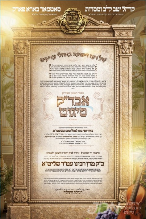 שמחת בית סאטמאר – ספינקא – פאפא ב"פ: עס איז געשלאסן געווארן די שידוך פון א אייניקל ביי כ"ק אדמו"ר מסאטמאר שליט"א, די כלה א טאכטער פון זיין זון הגה"צ ר' יעקב בער טייטלבוים שליט"א אבד"ק סיגעט, איידעם ביי כ"ק אדמו"ר משאפראן זצ"ל, מיט די חתן א זון פון הגה"צ ר' יהושע שלום ווייס שליט"א אבד"ק ספינקא, זון פון כ"ק אדמו"ר מספינקא שליט"א, און איידעם ביי הגה"צ אבד"ק פאפא ב"פ שליט"א.