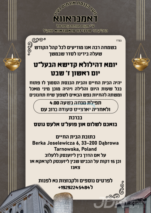 היינט ז' שבט געפאלט די יומא דהילולא קדישא פון הרה"ק רבי מרדכי דוד מדאמבראווא זי"ע, פילע אידן וועלן פוקד זיין דעם ציון הק' אין שטאט דאמבראווא אין פוילין.