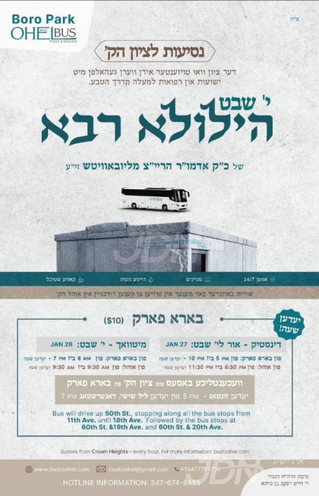 היינט נאכט י' שבט געפאלט די יומא דהילולא קדישא פונעם הייליגן מהריי"צ פון ליובאוויטש זי"ע, פילע אידן וועלן פוקד זיין דעם ציון הק' אויפן בית החיים מאנטיפיורי אין קווינס.
