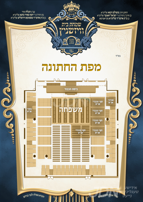 שמחת בית וויזניץ: היינט קומט פאר די שמחת החתונה פונעם חתן א זון פון הגה"צ ר' ישראל האגער שליט"א ראש ישיבת בנין אבות וויזניץ קייאמישע, זון פון כ"ק אדמו"ר מוויזניץ שליט"א פון קייאמישע, און איידעם ביי כ"ק אדמו"ר מוויזניץ שליט"א פון בית שמש, איידעם ביי כ"ק אדמו"ר מוויזניץ שליט"א לרפואה שלימה, מיט די כלה א טאכטער פון הגה"צ ר' יוסף מאיר כהנא שליט"א, זון פון כ"ק אדמו"ר מספינקא ירושלים שליט"א. – די שמחת החתונה קומט פאר אין ביהמ"ד הגדול אין קרית וויזניץ בני ברק.