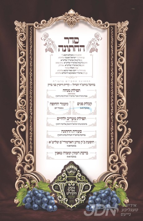 שמחת בית נדבורנא – דעעש: היינט קומט פאר די שמחת החתונה פונעם חתן א זון פון הגה"צ ר' אלטר מנשה לייפער שליט"א אבד"ק נדבורנא וומס"ב, זון פון כ"ק אדמו"ר מנדבורנא שליט"א פון בארא פארק, און איידעם ביי כ"ק אדמו"ר מקאליש זצ"ל, מיט די כלה א טאכטער פון הגה"צ ר' דוד פאנעט שליט"א מדעעש. – די שמחת החתונה קומט פאר אין זאל פון אור החיים וויזניץ אין בארא פארק.