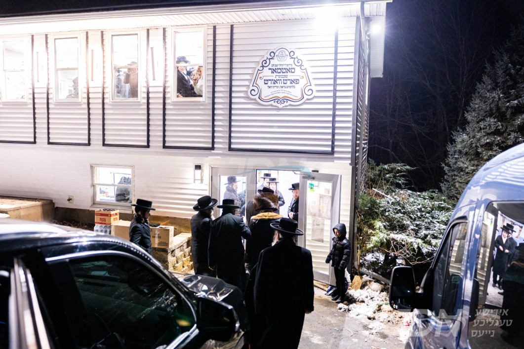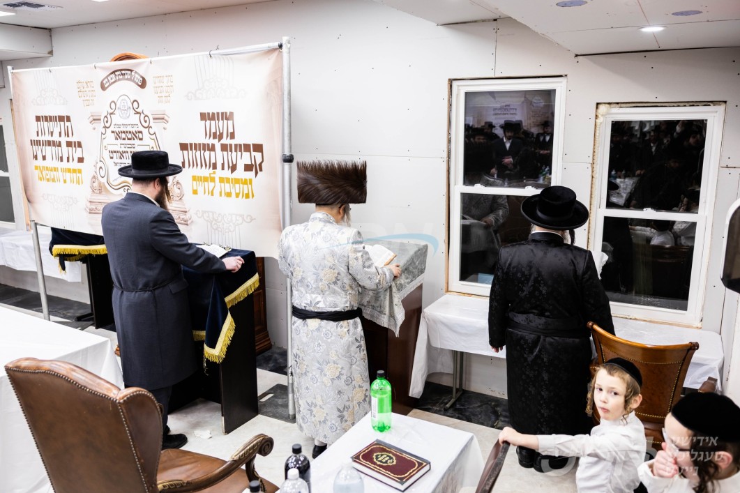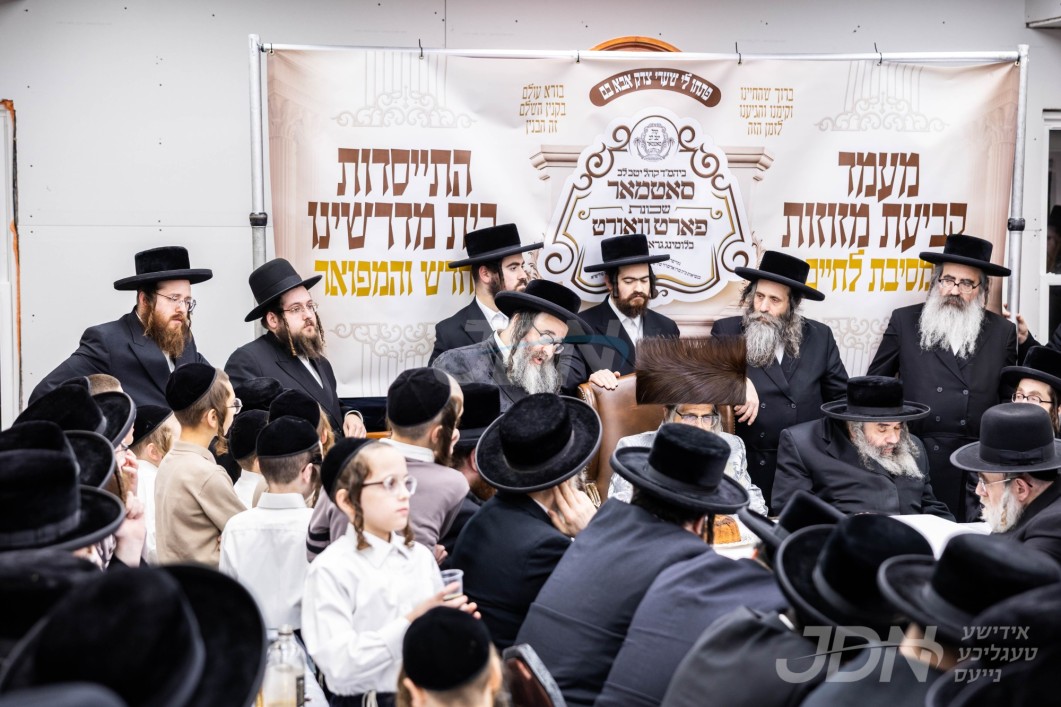 מעמד קביעת מזוזה אין ביהמ"ד החדש קהל יטב לב ד'סאטמאר שכונת פארט וואורט אין בלומינגראוו, קרית יואל